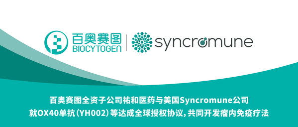 北京2022年10月18日 /新闻稿网 - Xinwengao.com/ — 百奥赛图(北京)医药科技股份有限公司("百奥赛图")的全资子公司祐和医药科技(北京)有限公司("祐和医药")今日宣布与临床阶段的美国生物制药公司Syncromune达成协议,共同开发和商业化基于Syncrovax™技术的瘤内免疫疗法。