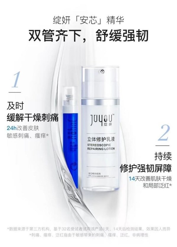 绽妍安芯精华以其急舒缓、舒敏感、稳屏障的能力深受干敏肌消费者喜爱。其采用双管分离设计,精华与乳液双料分存,大程度保证核心原料的高浓度及高活性,随用随混、极度锁鲜。