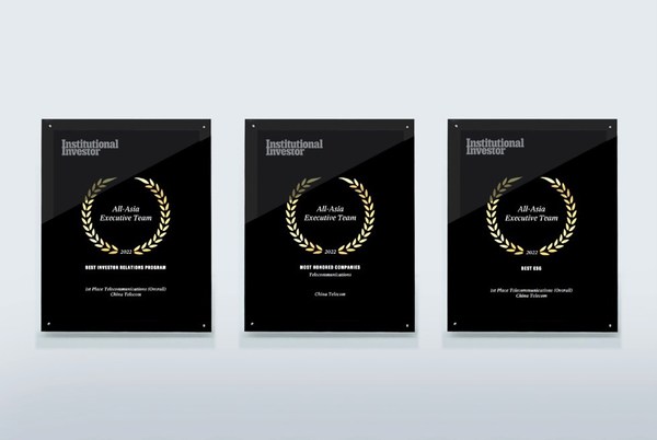 2022年的“亚洲最佳企业管理团队”评选收到逾4,850位来自1,381家买方机构的专业人士及670位来自140家卖方机构的分析师投票,在财务披露、服务与传讯、ESG、CEO、CFO及投资者关系专员等核心领域评比区内表现杰出的企业及管理团队。在本次评选中,中国电信在逾1,600家得票企业中被选为“亚洲最受尊崇企业”,同时公司亦在电信行业多个范畴中名列第一,包括: