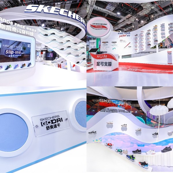 今年斯凯奇升级了"进博会逛展,特约租鞋服务",消费者可在展台即刻上脚试穿Slip – ins闪穿系列鞋款,体验便捷舒适科技,轻松逛进博。