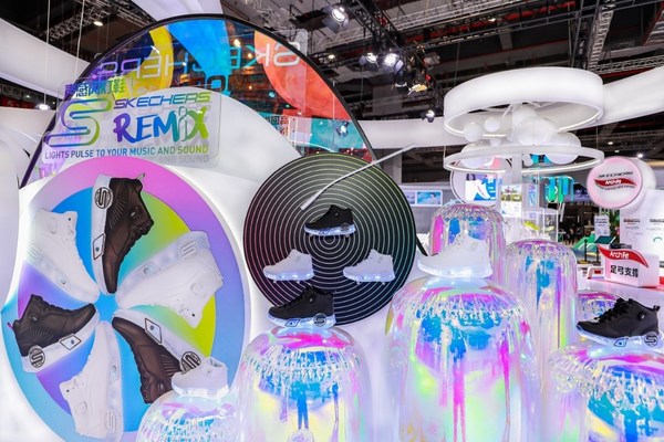 今年斯凯奇也在进博会展示了诸多儿童科技成果,S-REMIX闪灯科技,融入声控技术,鞋底闪灯频率跟随声音节奏闪烁,随心切换,趣味设计童心加满分。敲打架子鼓,现场灯光跟随音乐节奏闪烁,将S-REMIX技术 "沉浸式还原"。 斯凯奇还针对儿童运动、日常运用定制研发多项舒适科技。MERMORY FOAM 儿童记忆鞋垫提供柔软抗压特性; GOFLEX 科技柔软易弯折,契合孩子好动天性;GLIDE-STEP减震回弹科技,轻松应对孩童日常生活中跑动;SKECHERS GOTRAIL 舒适抓地;SKECHERS – AIR 气垫缓震科技给予孩童弹跳自由度,减轻摔倒风险,防护力倍增;GO KNIT、SKECHTCH轻量科技提供轻盈柔软机能。斯凯奇多重舒适科技守护儿童健康成长。