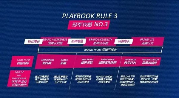 随着世界进入乌卡时代,指数级变革令商业世界充满不确定和易变性,开辟新市场不再仅仅是企业创造新价值的重要途径,并且已经成为实现风险对冲的有效手段,体育营销是企业进入新市场的经典方式。SPORTFIVE通过数以万记的案例,对消费者全链路行为进行分析,打造出了从匹配最佳合作伙伴到打造引人注目的营销创意到项目管理与效果评估的体育营销“黄金三部曲”,并独创性从粉丝增长到品牌增值到消费增长层层递进、环环相扣的“体育营销增长法则”,为业界指引了一条以体育营销开辟新市场的创新实践道路。