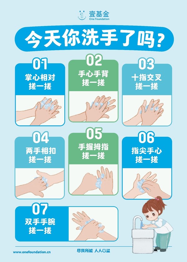 为了帮助乡村学校改善洗手条件,壹基金联合舒肤佳联合发起"健康传中国-洗手计划"。自2016年至2022年5月,项目共为全国19个省(自治区、直辖市)的73个县(区、县级市)的1357所乡村学校提供了8079台洗手设施设备,并配套了卫生健康课程,超过120万人次乡村儿童受益。