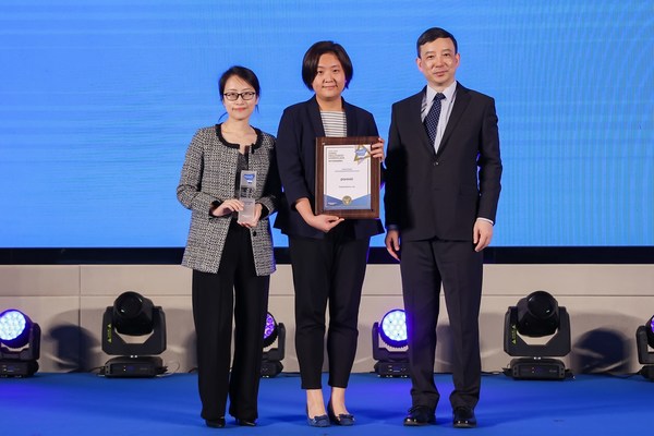 精鼎医药高级人力资源业务合作伙伴陆怡和亚太区人力资源福利经理夏晓懿代表精鼎医药出席领奖 (从左至右:精鼎医药高级人力资源业务合作伙伴陆怡、精鼎医药亚太区人力资源福利经理夏晓懿、美世全球合伙人,美世达信员工福利中国区总经理虞炜)