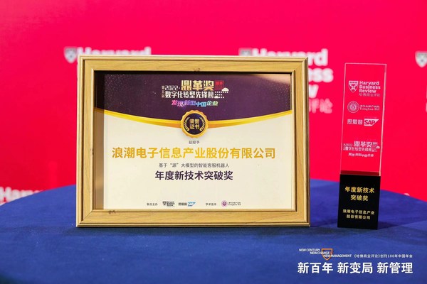 北京2022年11月29日 /新闻稿网 - Xinwengao.com/ — 近日,《哈佛商业评论》创刊百年中国年会举办,备受瞩目的"2022·「鼎革奖」数字化转型先锋榜"榜单于会上揭晓,浪潮信息基于"源"大模型的智能客服机器人荣获"年度新技术突破奖"。