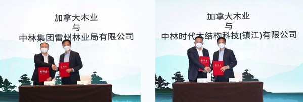 论坛上,中林集团雷州林业局有限公司副总经理王锐先生、中林时代木结构科技(镇江)有限公司总经理周旭,加拿大木业中国区执行总裁黄华力先生分别代表中林集团雷州林业局有限公司,中林时代木结构科技(镇江)有限公司和加拿大木业签订了战略合作协议,未来,多方携手共同推进现代木结构建筑的发展。