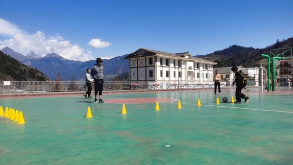 在四川省雅安硗碛藏族乡的一所学校里,五年前组建了一支足球队,孩子们平时是在水泥地上训练的。球队第一次踏上标准足球场,是去县里踢比赛,输得很惨,但孩子们回来后训练更勤奋了,不仅为了赢回比赛,更为了能有机会在那么好的球场里多踢几场。