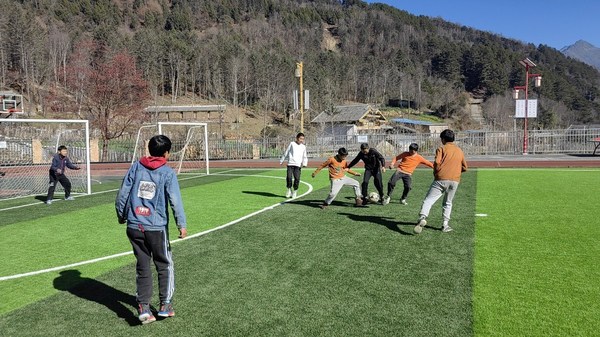 2022年7月,壹基金乡村儿童足球项目来到学校,将为孩子们修建了一座标准的的五人制足球场。开学的第一天,孩子们见到崭新的球场,激动又兴奋。“就像是在草原上踢球一样!”这是孩子们第一次在属于自己学校的球场上自由奔跑。