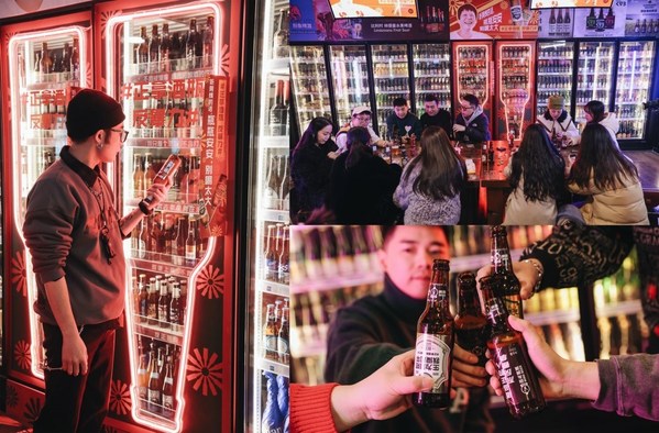这些贴有文案的“反暴力酒瓶”于平安夜,在“啤酒阿姨”多家店内投放,更特意打造一面“反暴力瓶贴”酒柜,前来喝酒的顾客只需在社交平台,带#正拿酒瓶 反暴力#话题,发布一条合影,即可免费得到一瓶啤酒作为留念。活动引发现场消费者的热烈参与,大家纷纷表示此次活动的立意独特。