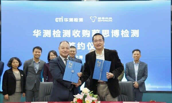 深圳2023年1月3日 /新闻稿网 - Xinwengao.com/ — 近日,中国第三方检测认证行业的开拓者和领先者华测检测认证集团股份有限公司(简称"CTI华测检测")与蔚华科技股份有限公司(以下简称"蔚华科技")在华测上海基地签署《关于蔚思博检测技术(合肥)有限公司之股权转让协议》。根据该协议以及CTI华测检测与蔚思博检测技术(合肥)有限公司(简称"蔚思博")其他股东签署的股权转让协议之约定,CTI华测检测已于2022年12月29日完成蔚思博100%股权转让交割,蔚思博正式成为CTI华测检测全资子公司。CTI华测检测集团董事长万峰、总裁申屠献忠、消费品事业部总裁田琪、东方区行政总裁陈骞、投资部总经理吴玥鋆、消费品中心实验室总经理苏红伟及蔚华科技副董事长秦家骐、蔚思博总经理林正德、市场营销总处副总经理陈伟正、工程总处副总经理郑宜明等共同出席签约仪式。