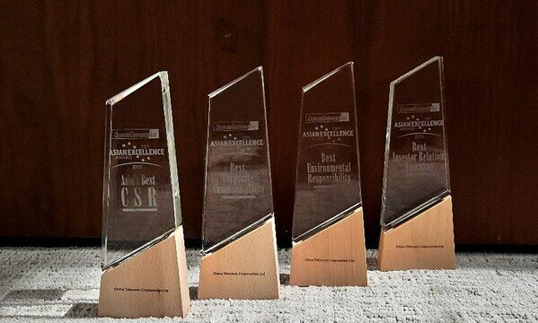 《Corporate Governance Asia》赞誉中国电信致力于保持高水平的企业管治,秉承良好、审慎和高效的企业管治理念,并不断提升公司企业管治能力。公司企业管治持续强化,符合股东的长期最佳利益。同时,亦表彰中国电信在助力数字生活发展和践行社会责任上取得的成绩。
