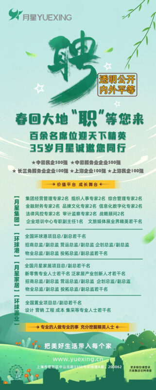 上海2023年1月19日 /新闻稿网 - Xinwengao.com/ — 坚守主业,全面提升队伍质量,全面提升经营效率,全面提升企业实力,这是35周年之际的月星集团确立的重要发展方向。 春节前夕,月星集团宣布启动"春回大地,‘职’等您来——月星大招聘"活动,面向公司内外延揽精英人才。本次招聘涉及高级经营决策层、高级运营管理类和部分专业领域的高级人才等共计百余个工作岗位。这是月星集团推进"三个提升"系列举措中的"第一招"。 月星集团创建于1988年, 2023年是月星成立三十五周年,是月星集团35年发展史的重要节点。 开局之年再出发,全国政协委员、全国工商联常委、月星集团董事局主席丁佐宏说,三十五年的风雨历程,特别是近几年的超预期冲击告诉我们,企业规模很重要,但企业的内在质量和抗风险能力更重要。有质量、有效率,才是有实力。这是月星集团提出"三个提升"的心得基础。把大招聘作为头招,是因为人才是企业持续高质量发展的第一资源。 月星集团的主业是实体商业和现代服务业。年终岁尾,从中央经济工作会议到各项政策部署,民营经济被重点提及,极大地提振了发展信心。丁佐宏不久前在接受央视《新闻联播》采访时表示,中央经济工作会议把恢复和扩大消费摆在优先位置上,对推动双循环的重视程度,超过了以往任何一个时间点。这对我们而言,是一个巨大利好,也是一个重要机遇。我坚信,市场永远在,消费永远在,对美好生活的追求永远在。 "2023年经济复苏是可以预见的,经济活跃度也是可以预见的,人们的发展信心和消费信心也必然会回来,企业发展将会再次进入上升期,人才的需求量将会明显提升,月星率先启动大招聘也是为了落好‘先手棋’。"丁佐宏还说。 在月星招聘信息中还可以看到,月星延揽人才,坚持透明公开,目光向外也向内。据月星集团介绍,月星集团在外部引入的同时,也非常注重内部精英人才的发掘与提拔。月星内部已经拟定出具有吸引力的激励制度体系,让内部人才有机会也有意愿及动力去展示能力,连同社会人才资源,共同搭建起企业可持续的人才梯队,服务于企业的稳健发展。 业内人士认为,在三年超预期冲击下,目前企业界存在着一些"不敢为、不敢闯"的现象,月星集团逆势开展这样的 "大招聘",为市场注入了信心,显现了企业的社会担当。一年之计在于春,月星此时开展这样的大招聘,也为中长期发展蓄力,在抢人才的策略上也可拔得头筹,是值得其他企业关注的做法。