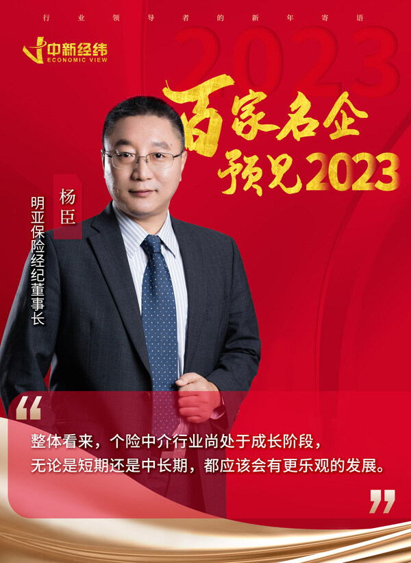北京2023年1月19日 /新闻稿网 - Xinwengao.com/ — 以下为中新经纬文章《百家名企预见2023|明亚保险经纪杨臣:个险中介行业市场份额进一步提升》: