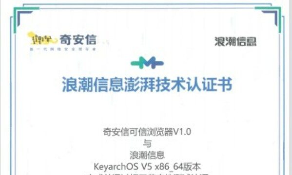 北京2023年7月27日 /新闻稿网 - Xinwengao.com/ — 近日,奇安信可信浏览器V1.0与浪潮信息云峦操作系统KeyarchOS V5完成并通过了兼容性适配认证。经双方联合测试,二者完全兼容,功能、性能和兼容性方面表现良好,运行稳定高效,满足用户需求。