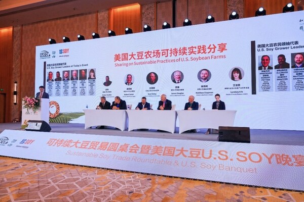 昆明2023年7月28日 /新闻稿网 - Xinwengao.com/ — 7月26日,美国大豆出口协会在昆明举办以"和衷共济四十载 携手前行向未来"为主题的可持续大豆贸易圆桌会暨美国大豆U.S. Soy晚宴,分享美国大豆产业提供的可持续解决方案,并与中国的业界伙伴共同庆祝美国大豆产业服务中国四十周年,畅谈合作、畅想未来。正值"第十四届全球大宗粮油产业峰会"在昆明举办之际,来自油脂油料、饲料加工、农业贸易、美国驻华使馆农业处、相关行业组织机构、研究机构等领域的近百位嘉宾出席了本次美国大豆产业的活动。