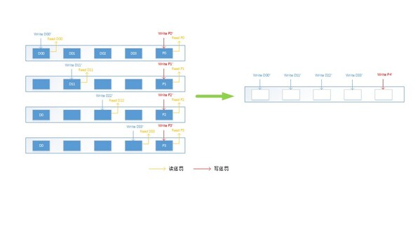 RAID满条带写的方式,也解决了RAID各盘上数据写入量和写入频率不均衡导致的热点问题,从而避免热点盘频繁擦写甚至擦写次数快速耗尽,保证SSD硬盘的寿命;也避免热点盘上IO压力变大、IO时延变长,成为性能的瓶颈盘风险,有利于存储系统的性能发挥。