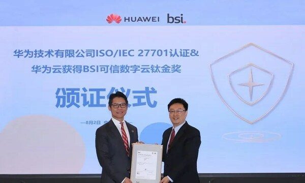 深圳2023年8月4日 /新闻稿网 - Xinwengao.com/ — 近日,华为技术有限公司(以下简称为"华为")顺利通过国际领先标准、测试及认证机构BSI的严格审核,荣获由BSI颁发的ISO/IEC 27701隐私信息管理体系认证证书。至此,华为已有20多家子公司获得 ISO/IEC 27701证书,覆盖终端、云和ICT等业务。