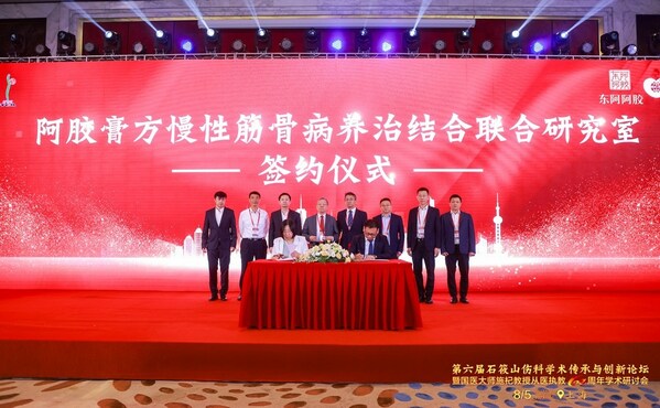 为促进骨伤科研究创新,助力中医药产学研协同发展,在论坛开幕式上,东阿阿胶宣布与上海市中医药研究院脊柱病研究所达成战略合作,联合筹建"阿胶膏方慢性筋骨病养治结合联合研究室",将开展东阿阿胶治疗类风湿关节炎并发骨质疏松、骨龙胶囊治疗类风湿关节炎、骨性关节炎等骨伤疾病的相关研究,并加强阿胶膏方研究合作,积累开拓慢性筋骨病方面数据经验,优化服务更多骨伤患者。