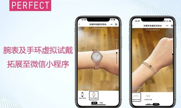 上海2023年8月14日 /新闻稿网 - Xinwengao.com/ — 玩美移动.(NYSE:PERF)作为领先的增强现实(AR)和人工智能(AI)美容和时尚技术解决方案提供商,正式推出了适用于微信小程序端的腕表及手环虚拟试戴服务。此项服务主要通过3D 渲染技术、PBR技术等创建数字化产品效果,使腕表及手环等单品的虚拟佩戴效果呈现于微信小程序端,从而使得腕表、手环品牌通过虚拟试戴解决方案为消费者提供身临其境且具有吸引力的试戴体验,进而在线购物时满足消费者的个性化需求。