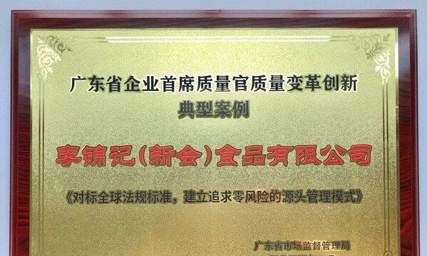 此次,李锦记提报的关于《对标全球法规标准,建立追求零风险的源头管理模式》的首席质量官质量变革创新案例从全省286家企业报送中脱颖而出,成为全省7个广东省企业首席质量官质量变革创新典型案例之一,同时也入选广东省市场监督管理局典型案例。
