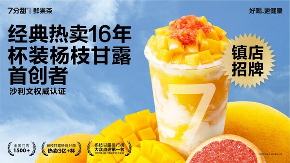 上海2023年9月1日 /新闻稿网 - Xinwengao.com/ — 从2007年首创第1杯杨枝甘露起,"7分甜"杯装杨枝甘露今年正式迎来16周年。