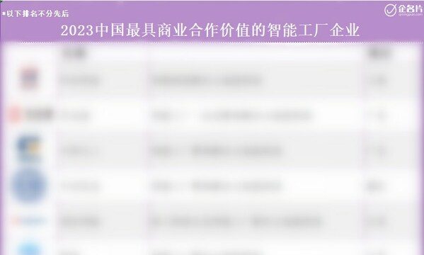 在这个充满机遇和挑战的时刻,企名片为寻找中国智能制造领域最具合作价值的企业,推出了企业盘点征集活动,最终整理出"2023中国最具商业合作价值的智能工厂企业"TOP10。中之杰智能凭借前瞻性的战略眼光和领先性的技术实力入选,进一步奠定了智能制造领域行业翘楚的优势地位。
