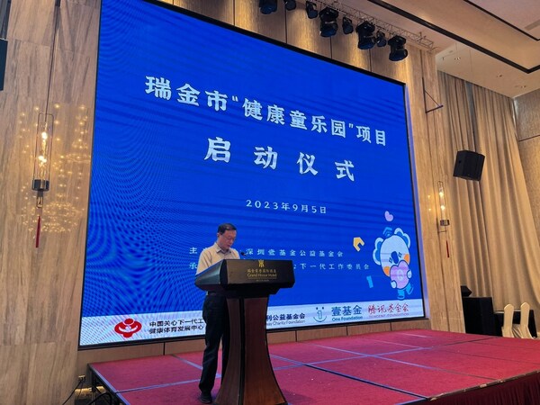 深圳2023年9月6日 /新闻稿网 - Xinwengao.com/ — 9月5日上午,2023年"健康童乐园——儿童早期发展计划"启动仪式在瑞金市举行,瑞金市委常委、副市长杨新秋同志,深圳壹基金公益基金会(以下简称"壹基金")助理秘书长沙磊,瑞金市关工委主任杨晓宁同志出席了本次活动仪式并致辞。