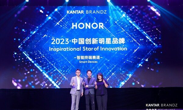 上海2023年9月11日 /新闻稿网 - Xinwengao.com/ — 2023年9月8日,凯度BrandZ中国品牌盛典在上海举行,盛典揭晓了年度最具价值中国品牌百强名单。活动上荣耀斩获智能终端赛道的创新成长明星品牌奖,成为首个获此殊荣的手机品牌。