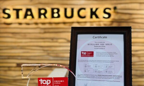 上海2023年9月13日 /新闻稿网 - Xinwengao.com/ — 今天,星巴克中国荣获杰出雇主调研机构(Top Employers Institute)的“中国杰出雇主2023”认证。由杰出雇主调研机构通过全球独立调研给予认证。今年,星巴克凭借在领导力、多元化与包容性、可持续发展等多方面的优异表现获此殊荣。