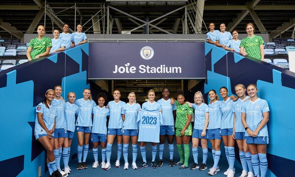 Manchester City squad at the newly renamed Joie Stadium – the only purpose-built stadium in the Women’s Super League and the first to have a naming partner