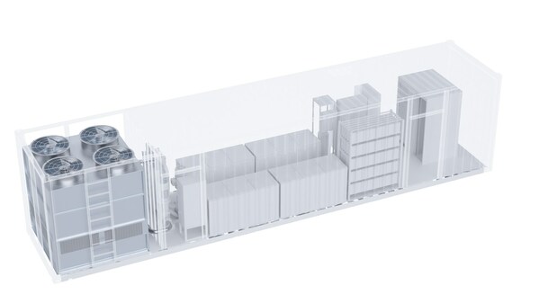 该产品的初步设计是一个 40 英尺的集装箱,采用Tier 3设计标准,可搭配来自技嘉科技的 HPC/AI 浸入式服务器。这些服务器被放置在四个36U尺寸 的冷却槽中,总机架尺寸为 144U。