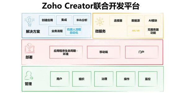2006年,Zoho Creator 首次发布,截至目前,构建了超过700万个应用程序。Zoho Creator将应用程序开发、商业智能分析、智能集成和流程自动化都整合到了一个平台中,超越了单纯的应用程序开发,转而成为真正意义上的“创造者”平台。低代码功能扩展到应用开发的所有阶段,帮助企业更快落地,提供极简的开发体验。