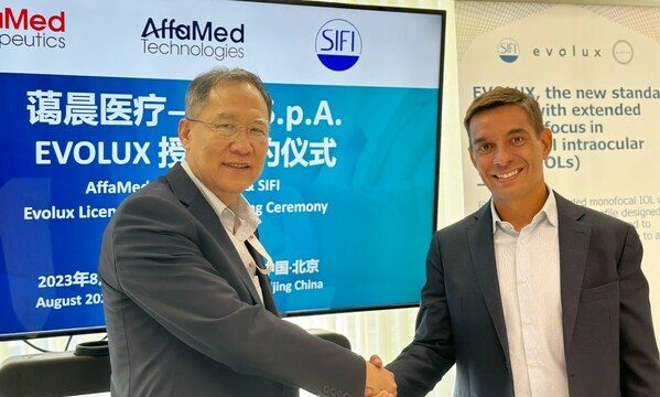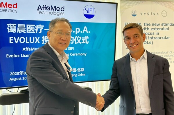 北京2023年10月10日 /新闻稿网 - Xinwengao.com/ — AffaMed Therapeutics(以下简称“蔼睦医疗”)与 SIFI S.p.A.(以下简称“SIFI”)成立的合资企业AffaMed Technologies(以下简称“蔼晨医疗”)今日宣布,已与 SIFI 签订了一份许可协议,根据该协议,蔼晨医疗获得了 EVOLUX® 这一新型扩展型单焦点人工晶状体(IOL)在大中华区的独家生产、开发和商业化权利。在北京举行的签约仪式上,蔼睦医疗和SIFI的首席执行官共同庆祝了这款创新型优质人工晶状体产品在大中华区市场的重要拓展,以及双方合资企业自2021年4月成立以来所取得的强劲发展。