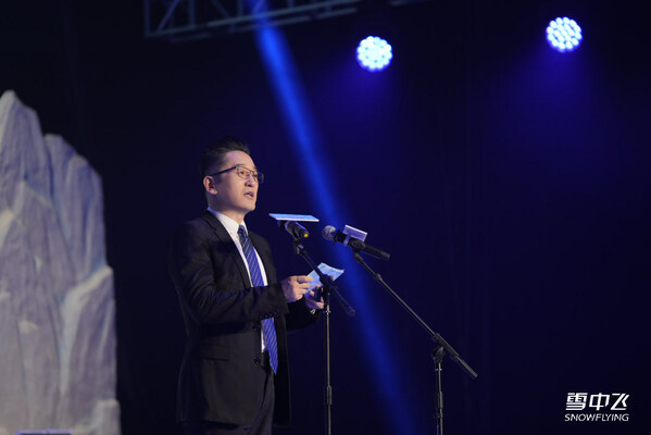 启动仪式现场盛况空前,精彩震撼的创意表演,沉浸式地展现出冰雪运动特有的欢乐与激情,将"为雪而生"的主题表达得淋漓尽致。世界冠军的到来则为启动仪式注入满满的运动精神,也让人们对12月3日即将到来的"为雪而生 ·123大众冰雪节"公益活动有了更多期许。雪中飞实业有限公司合伙人、总经理 – 朱向东先生现场发表了致辞,他表示,雪中飞是一个非常有活力、有动感的品牌,我们希望把更好的时尚体验和创意产品传递给消费者同时,也能将"为雪而生"、乐活玩雪的精神传递给更多人,引领人们大胆探索冰雪运动的无限可能,带动全民玩雪新风尚。