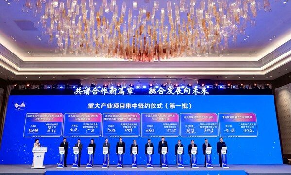 恳谈会上,43个重大产业项目集中签约,总投资超465亿元(约63.8亿美元);6个基金合作项目签约,总规模53亿元。同时,一批全球招商合作伙伴授牌。