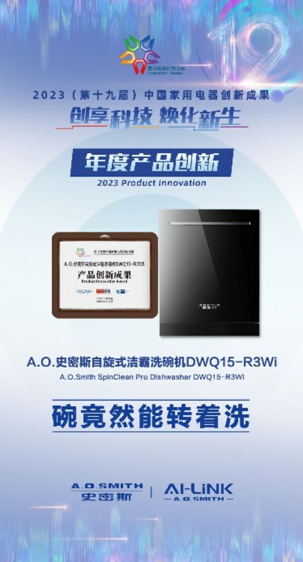 南京2023年11月16日 /新闻稿网 - Xinwengao.com/ — 在日前闭幕的"第十九届中国家用电器创新成果发布盛典"会上,一台充满创新灵感的洗碗机产品引发了在场者的围观——A.O.史密斯自主研发的自旋式洁霸洗碗机DWQ15-R3Wi。依靠着卓越的研发能力以及创新的工业设计,这款"洗碗神器"赢得了盛典上的"年度产品创新"大奖,并收获了在场专家以及行业伙伴的一致青睐。