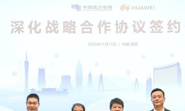 深圳2023年11月20日 /新闻稿网 - Xinwengao.com/ — 2023年11月17日,南方电网公司与华为技术有限公司(以下简称"华为公司")在深圳签署深化战略合作协议。在南方电网公司董事长、党组书记孟振平,华为公司监事会主席郭平的共同见证下,南方电网公司党组成员、副总经理贺晓柏,华为公司副总裁、中国政企业务总裁吴辉代表双方签署协议。签约前,双方举行了会谈。