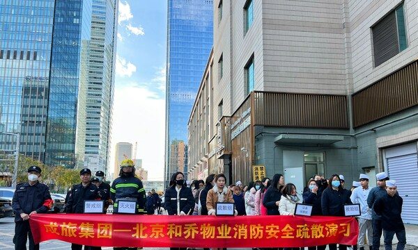 北京2023年11月23日 /新闻稿网 - Xinwengao.com/ — 在全国"消防宣传日"之际,为增强物业管理人员的消防安全意识,提升火灾事故应急处理水平,近日,成旅集团旗下北京和乔物业管理有限公司联合建外街道,动员楼内租户共同参与,紧密围绕消防宣传日"预防为主,生命至上"这一主题,开展了消防安全疏散演习。