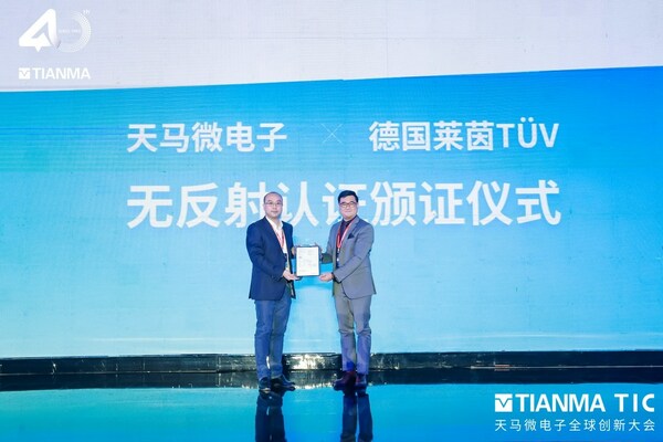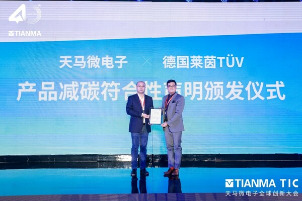 厦门2023年12月1日 /新闻稿网 - Xinwengao.com/ — 日前,国际独立第三方检测、检验和认证机构德国莱茵TÜV大中华区(简称"TÜV莱茵")受邀参加天马微电子股份有限公司(简称"天马")全球创新大会(TIC 2023)。大会上,TÜV莱茵大中华区电子电气产品服务副总裁杨佳劼为天马Mini LED面板颁发了减碳符合性声明,并为天马LCD显示屏颁发了无反射认证证书。