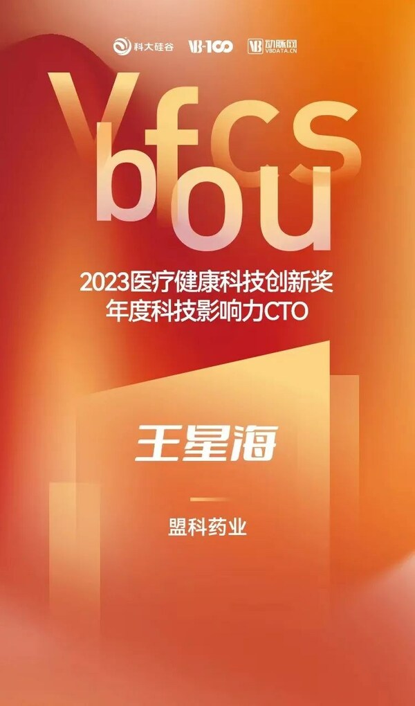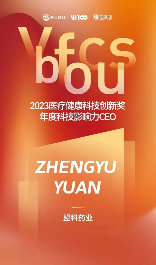 "VB-Focus 2023医疗健康科技创新奖"由聚焦于医疗健康产业的媒体平台——动脉网发起评选,主要面向在科技创新、产业落地等方面有重要推动能力的CEO,以及在技术创新、研发、规划、质量等方面有重要推动能力的CTO展开征集。经过组委会的评审,盟科药业CEO ZHENGYU YUAN(袁征宇)和CTO王星海上榜。两人都具备丰富的药物研发经验,深耕耐药细菌这个问题日益严峻的领域,带领盟科实现了技术上的突破,研发出了具有核心竞争力的产品——康替唑胺片。
