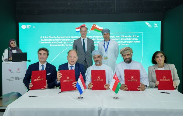 阿联酋迪拜2023年12月4日 /新闻稿网 - Xinwengao.com/ — 阿曼苏丹国能源与矿产部、Hydrogen Oman (Hydrom) 与阿姆斯特丹港、Zenith Energy Terminals 以及 GasLog 签署了一份联合研究协议 (JSA),将合作开发一条将阿曼苏丹国生产的绿氢推向市场的液氢路线。 Sultanate of Oman signs JSA for the development of a green hydrogen corridor between Oman and the Netherlands 该协议强调了合作伙伴们的明确目标,即成功打造全球首条商业规模的液氢走廊。该协议于迪拜 COP28 会议期间在阿曼馆签署。阿曼能源与矿产部长 Eng. Salim bin Nasser Al Aufi 阁下与荷兰王国气候特使 Jaime de Bourbon de Parme 王子作为官方见证人,出席了这一仪式。 该协议将对在阿曼苏丹国建设的开放式氢气液化、储存和出口设施的需求进行详细评估,同时将提供 GasLog 目前正在研制的专用船用于液氢运输。该协议主要目的是在阿曼苏丹国与荷兰之间建立一条绿氢走廊,以 Zenith Energy 的终端为目的地,进口阿曼生产的氢,进行再气化处理,然后进一步分销给阿姆斯特丹港的当地承购商以及欧洲内陆的大型企业。开放式液化设施还将助力阿曼苏丹国政府探索具有成本效益的氢出口走廊,将其所生产的氢出口到全球其他市场。 在阿曼 2040 年愿景(致力于摆脱对石油和天然气的依赖,实现经济多样化)以及该国到 2050 年实现净零排放的长期目标的指导下,阿曼苏丹国政府推行了一项氢能战略,旨在对本国丰富的(风能和太阳能)自然资源以及现有的港口和工业基础设施实现充分利用。此外,阿曼的地理位置优越,为其向欧洲和亚洲市场进行供给提供了便利。Hydrom 将负责协调阿曼氢能行业的整体发展,承担总体规划和管理政府土地分配给氢能开发商的任务,并监督项目的执行情况。开放式液化设施将为这些项目带来巨大的潜能,让液氢作为可行的媒介,以满足各项目的出口需求。