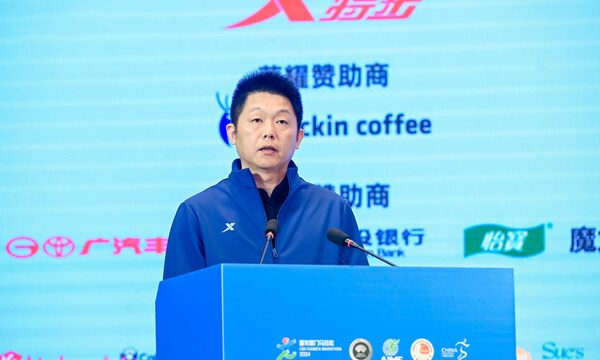 厦门马拉松赛顶级战略合作伙伴特步(中国)有限公司代表、大特事业部联席CEO、产品系统总裁王家业先生出席新闻发布会,回顾特步与厦马携手16年岁月,并发布特步"五大升级",与赛事共创精彩。