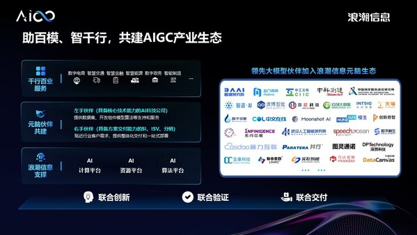 目前,元脑生态以浪潮信息的AI算力平台、AI资源平台和AI算法平台为支撑,已经对接40多家芯片厂商,400+算法厂商,4000+系统集成商,通过多元的算力供给、全栈的AI Infra软件栈、丰富的大模型经验,实现"百模"与"千行"的对接,助力千行百业加速生成式AI 产业创新,高效释放生产力。