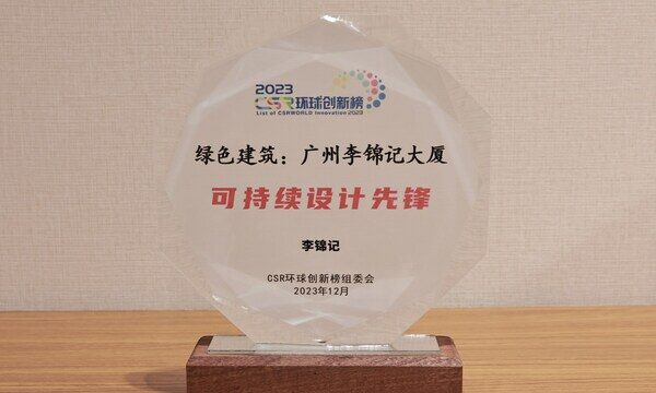 广州2023年12月22日 /新闻稿网 - Xinwengao.com/ — 12月20日,由CSR环球、羊城晚报联合主办的"伴绿而进 助推高质量发展"2023CSR环球创新榜颁奖盛典暨高峰论坛在广州圆满举行。百年酱料企业李锦记凭借"绿色建筑:广州李锦记大厦"项目,设计上融合可持续理念,兼具创意与美感,荣获大会颁发"可持续设计先锋"奖。