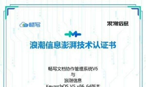 北京2023年12月25日 /新闻稿网 - Xinwengao.com/ — 日前,统信畅写文档协作管理系统和畅写在线各版本软件与云峦操作系统KeyarchOS V5完成浪潮信息澎湃技术认证。经测试,双方产品整体运行稳定,在功能、性能及兼容性方面表现良好,满足客户的核心需求。