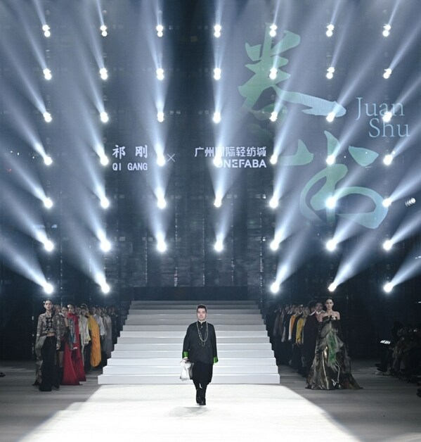 广州国际轻纺城与中国服装设计最高奖"金顶奖"设计师祁刚的联名大秀压轴登场,祁刚新作"卷书"花城首发,运用中西融合裁剪,展现传统意蕴风采,倾力演绎东方美学新风尚。