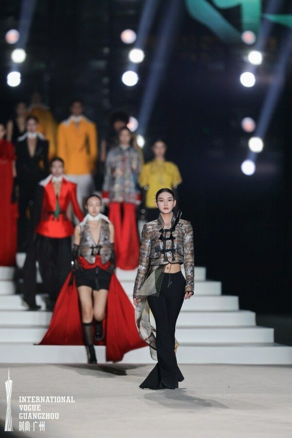 为积极助推广州"时尚之都"建设与时尚产业高地打造,赋能重要时尚活动提升显示度与影响力,广州国际轻纺城持续身体力行,携手"金顶奖"设计师祁刚联合发布"卷书"主题新作,再度刷新现代东方时尚美学的风向标与国际范。文人墨客,常常不经意从衣襟之间飘落书卷,恰巧汇聚成了本次新作的灵感之源。以新中式的演变结合片层结构,以及从中国传统肚兜形式演变而来的高级时装,精致裁剪出中国独有的文化内蕴与时尚韵味。这不仅是广州国际轻纺城近期品牌焕新后的首场"金顶奖"设计师联名大秀,也是在时尚产业大会上,继计文波、张肇达后,第三次携手顶流金顶大咖联合发布。