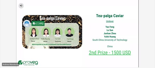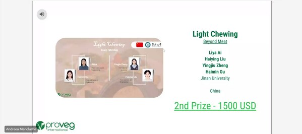 来自中国的暨南大学的"Light Chewing"(轻咀嚼)队伍和华南理工大学的学生团队"Tea-palga Caviar"(茶基海藻调味鱼子酱)分别获得大赛的二等奖,各赢得奖金1500美元。