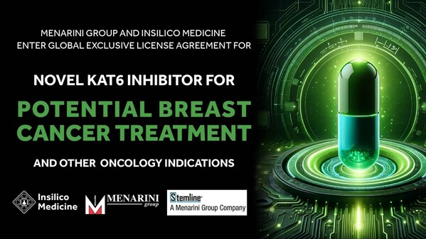 意大利佛罗伦萨和美国纽约2024年1月5日 /新闻稿网 - Xinwengao.com/ — 2024年1月5日,国际领先的制药和诊断公司美纳里尼集团("美纳里尼")与其全资子公司 Stemline Therapeutics,和临床阶段的人工智能(AI)驱动的生物科技公司英矽智能达成一项授权许可协议。美纳里尼将获得ISM5043的全球独家开发和商业化权益,这是由英矽智能人工智能平台辅助设计和开发的一种靶向KAT6的新型小分子抑制剂,有望被用于ER+/HER2-乳腺癌和其他癌症的治疗。