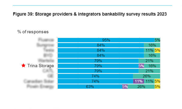 慕尼黑2024年1月8日 /新闻稿网 - Xinwengao.com/ — 近日,全球知名研究机构彭博新能源财经(BNEF)公布了《2023年储能系统成本报告》(Energy Storage System Cost Survey 2023) (以下简称"报告")。在其储能产品及系统集成商可融资性榜单中,天合储能凭借稳健的财务状况、优质的储能产品与服务及全球稳定的供应链体系位列全球前五。